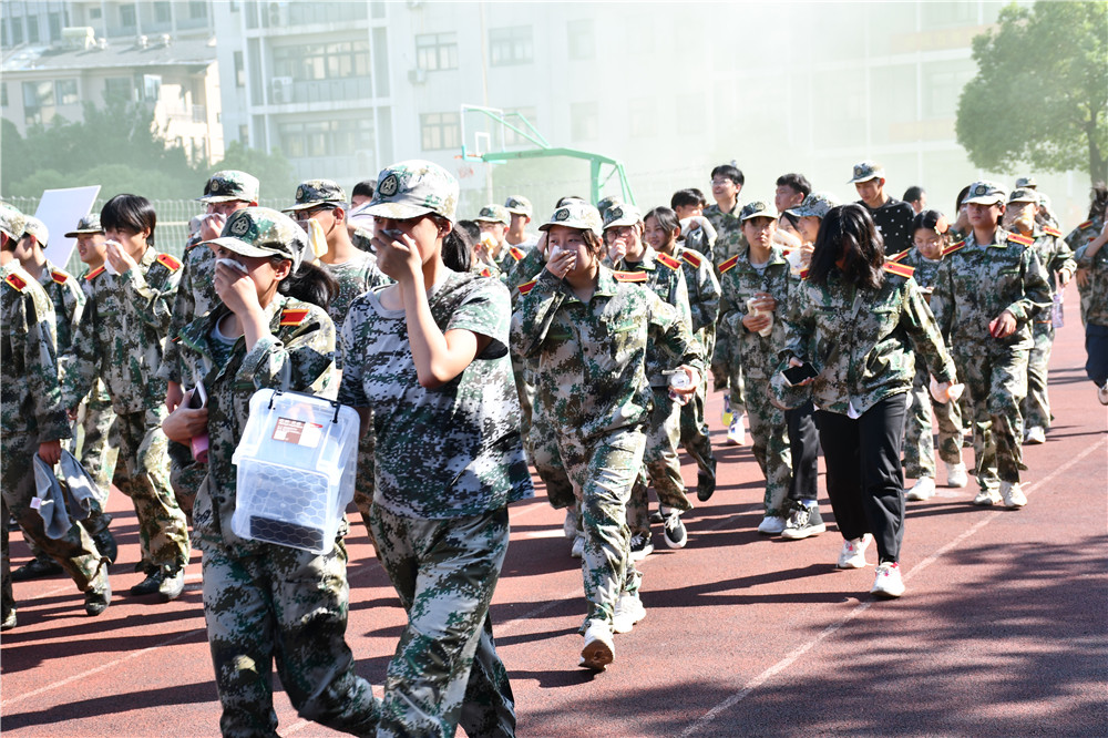 讲座结束后,学校分别在钱荣校区和锡澄校区开展消防应急疏散演练。伴随着校园内火灾警报声的响起,同学们按照既定疏散路线,有序向外撤离,到指定地点集合。接到报警后,消防救援车队立即赶赴现场进行救援,最终成功灭火、解除应急状态。在疏散过程中,同学们弯腰用毛巾捂住口鼻,听从指挥,教官和班主任教师的智慧,沉着冷静应对,整个疏散过程井然有序,取得了良好效果。演练结束后,消防救援队负责人对应急疏散演练进行了点评。他表示,此次消防应急疏散演练准备比较充分,现场处突能力、协作能力较强,演练成功。
