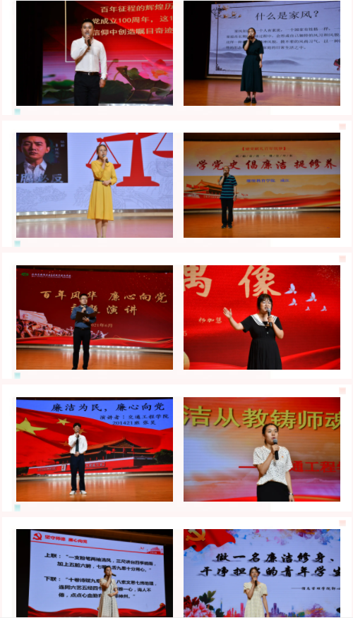 本次演讲比赛由学校各党总支(直属党支部)推荐的19位师生参加。参赛选手们围绕党史学习、党风廉政建设、师德师风建设、好家风故事、中国精神等,立足岗位、紧扣主题,以真挚的情感、流畅的语言,声情并茂地讴歌了党、讴歌了祖国,赞颂了中华优秀儿女的优良作风和良好家风,展示了学校教师坚守师德、廉洁从教的精神风貌,诠释了忠诚、廉洁、担当的重要意义和历史使命。经过激烈地角逐,比赛最终评选出一等奖2名,二等奖4名,三等奖6名,优秀奖7名。