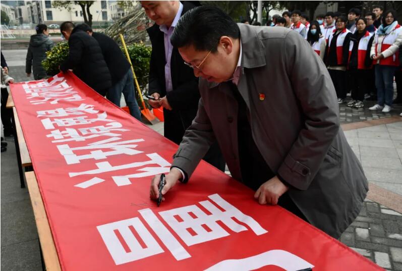 李书记带头在贡献自己的力量,让环境更美丽的横幅上签名,表达让校园更绿、让校园更美的绿色理念。随后,李书记同后勤党员志愿者、学生志愿者一起,参与义务植树,为生态校园再添新绿。