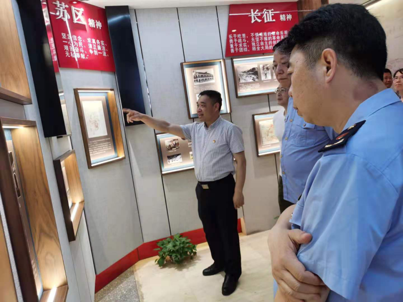 在参观中,后勤党支部巢建军和共建支部杨晴书记向在场的党员同志生动讲解了党的光辉历史和伟大精神。全程参观完后,全体党员对井冈山、古田精神、苏区精神、长征精神、张思德精神、南泥湾精神等35种伟大精神有了更深入的了解。