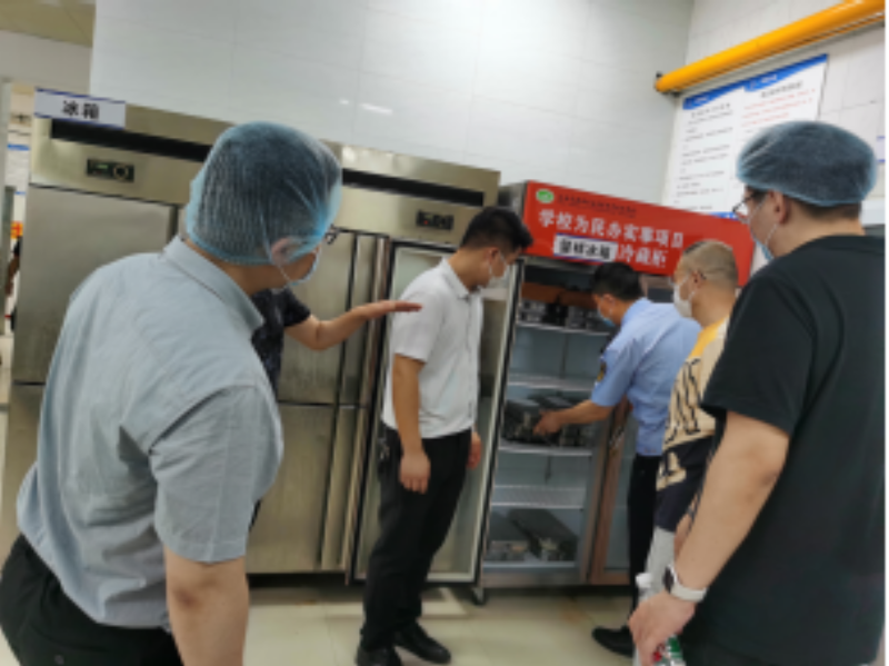2023年6月20日,滨湖区市场监督管理局荣巷分局对学校食堂进行检查。此次检查重点对食堂食品库存、进货查验、就餐环境、餐饮具清洗消毒、设施设备维护、剩饭菜及留样处理、从业人员健康管理等方面进行全面检查,对发现的问题现场提出整改意见,要求食堂负责人及时消除风险隐患,确保广大师生的食品安全。