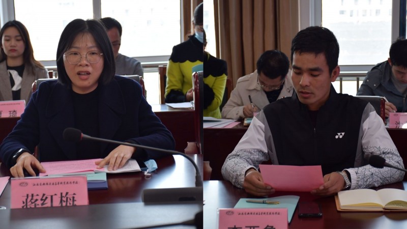 仪式上,学校教务处处长冯美仙宣读了青蓝结对名单,校党委书记、校长李虎为指导教师颁发聘书,指导教师代表蒋红梅和青年教师代表李亚鲁分别发言,随后师徒双方签订结对协议。