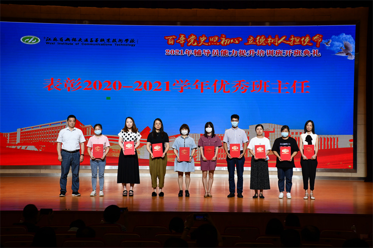 开班典礼期间,还聘任了2021级新生班辅导员,表彰了2020-2021学年优秀班主任。新生班辅导员代表王赟老师发言中表示将做好本职工作,做到守土有责、守土尽责,为学校高质量发展贡献力量。