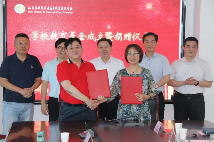 仪式上,无锡太湖教育基金会会长许益超表达了与我校合作的美好意愿,双方签订了学校教育发展专项基金合作协议;江阴瑞志船务有限公司董事长、94级校友范文海捐赠了价值8万元的一类柴油机2台。