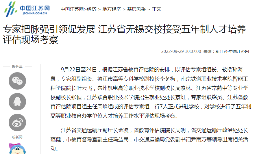 中江网:专家把脉强引领促发展 江苏省无锡交校接受五年制人才培养评估现场考察