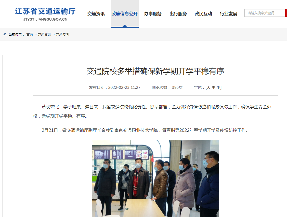 江苏省交通运输厅官网:交通院校多举措确保新学期开学平稳有序