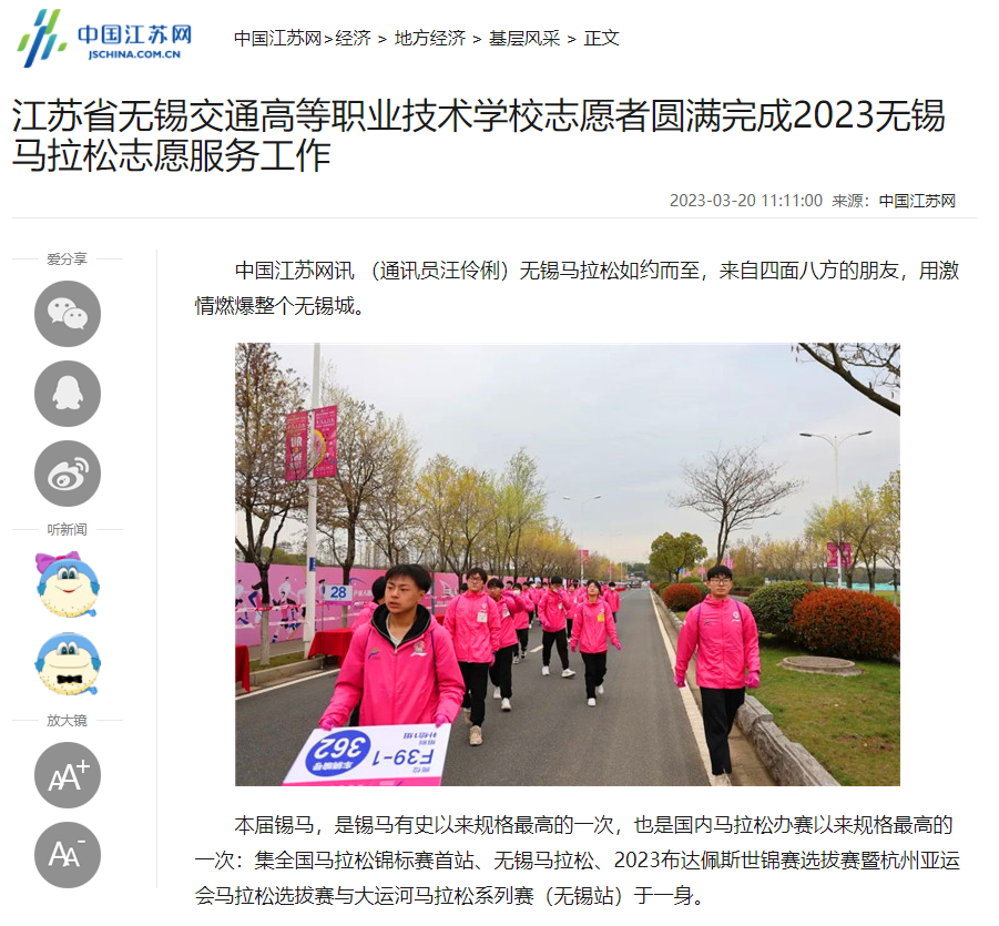 中国江苏网:开云app官方在线入口志愿者圆满完成2023无锡马拉松志愿服务工作