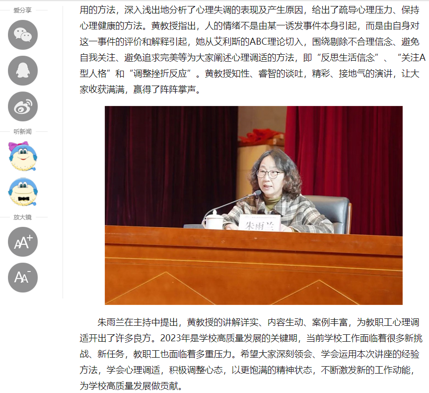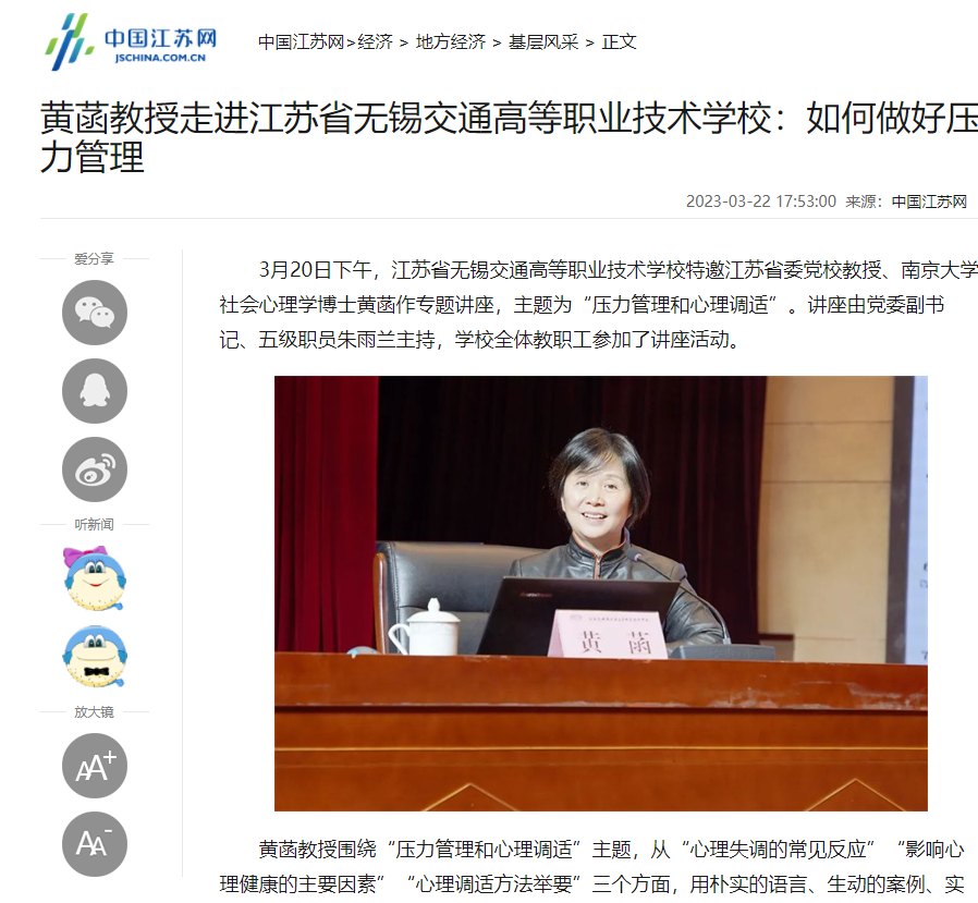 中国江苏网:黄菡教授走进开云app官方在线入口:如何做好压力管理