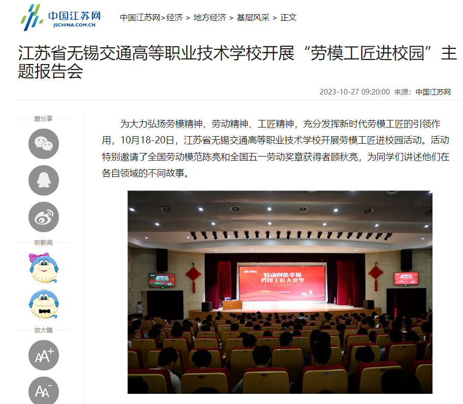 中江网:开云app官方在线入口开展“劳模工匠进校园”主题报告会
