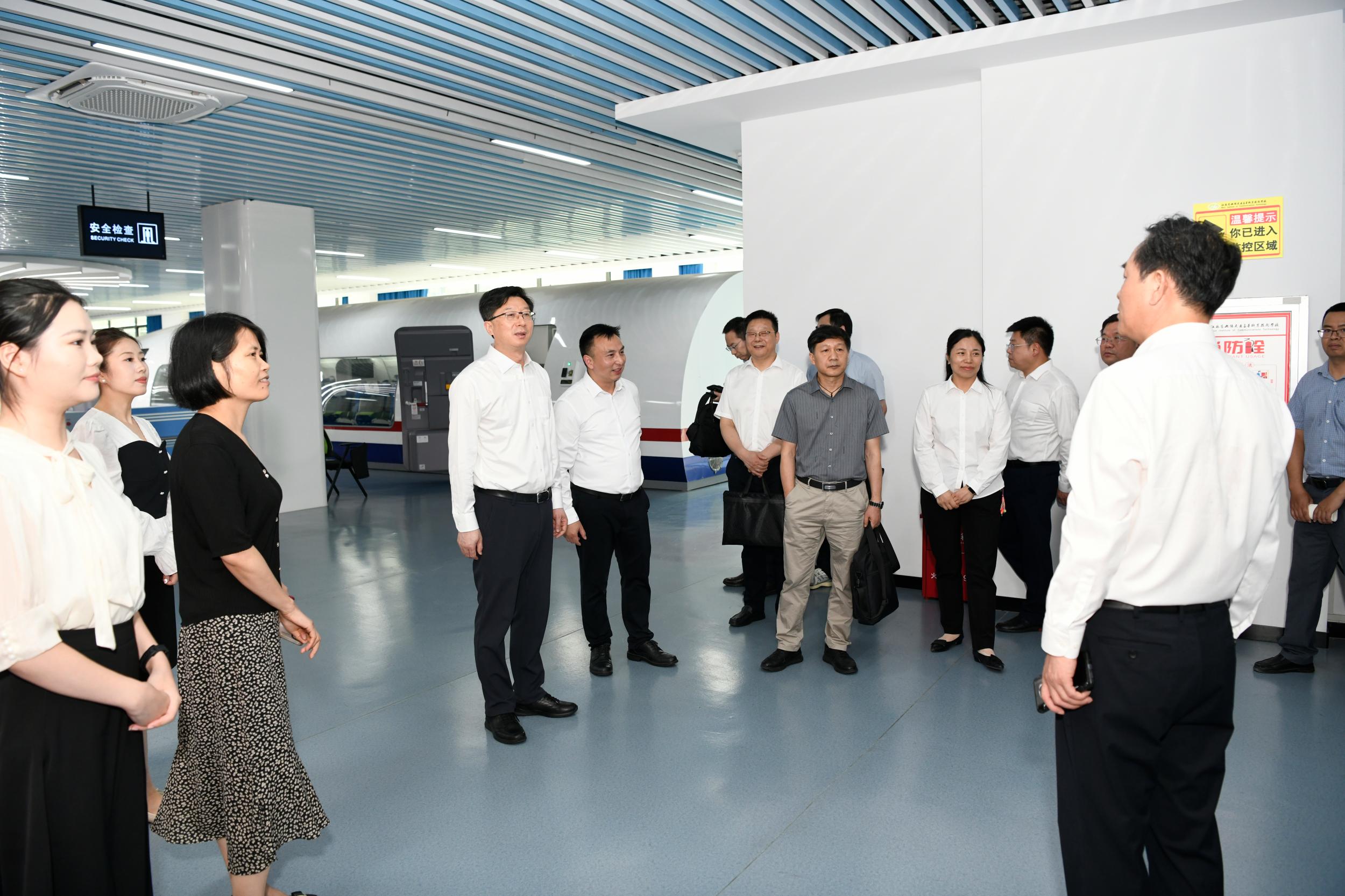 吴永宏一行实地调研了学校现代综合交通物流融合发展实训中心、航空运输实训基地、交通工程试验检测实训基地,听取了关于实训基地建设、产教融合、校企合作、人才培养、师资队伍建设等相关情况的汇报。