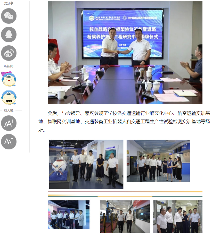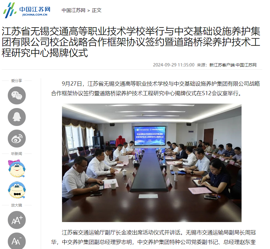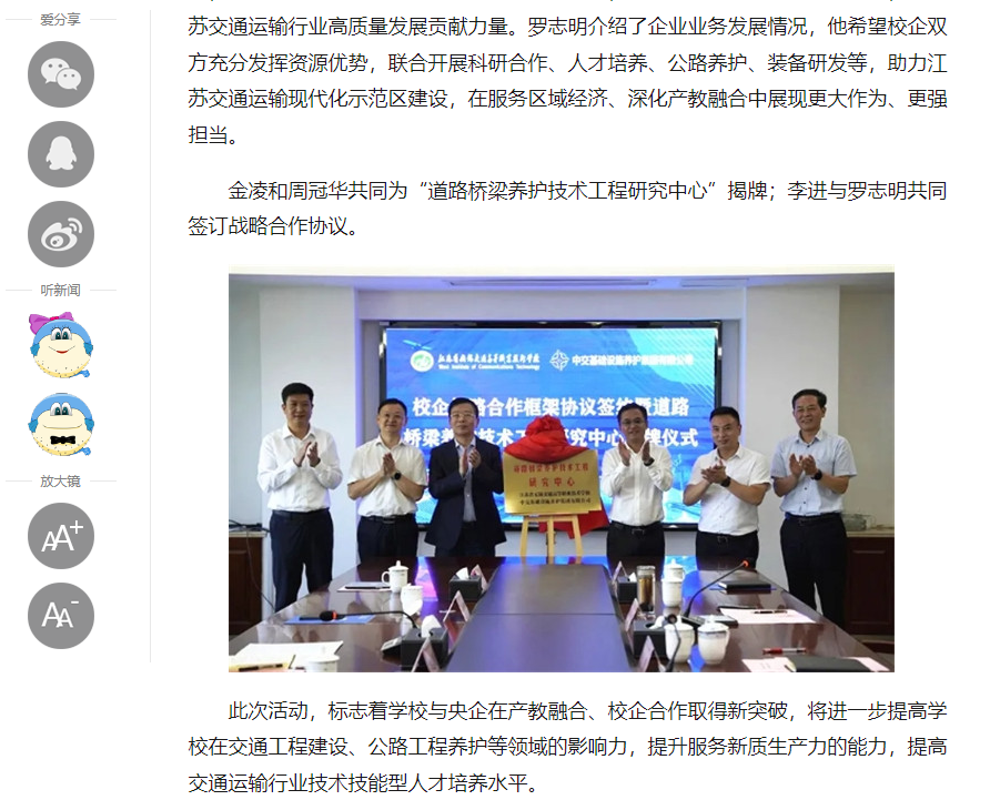 中江网:开云app官方在线入口举行与中交基础设施养护集团有限公司校企战略合作框架协议签约暨道路桥梁养护技术工程研究中心揭牌仪式