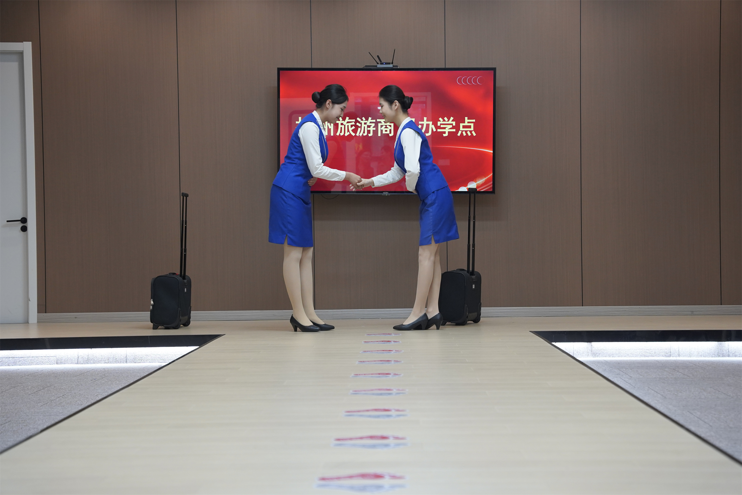 11月14日上午,交通运输专指委开空中乘务专业教学成果展示交流暨航空运输教学资源库推进工作会议在无锡召开。交通运输专业建设指导委员会秘书长耿兴华、副秘书长尹爱华、南京蓝天教育集团有限公司总经理朱正华出席活动,来自5所分院、办学点的二十余名骨干教师和学生参加了本次交流活动。