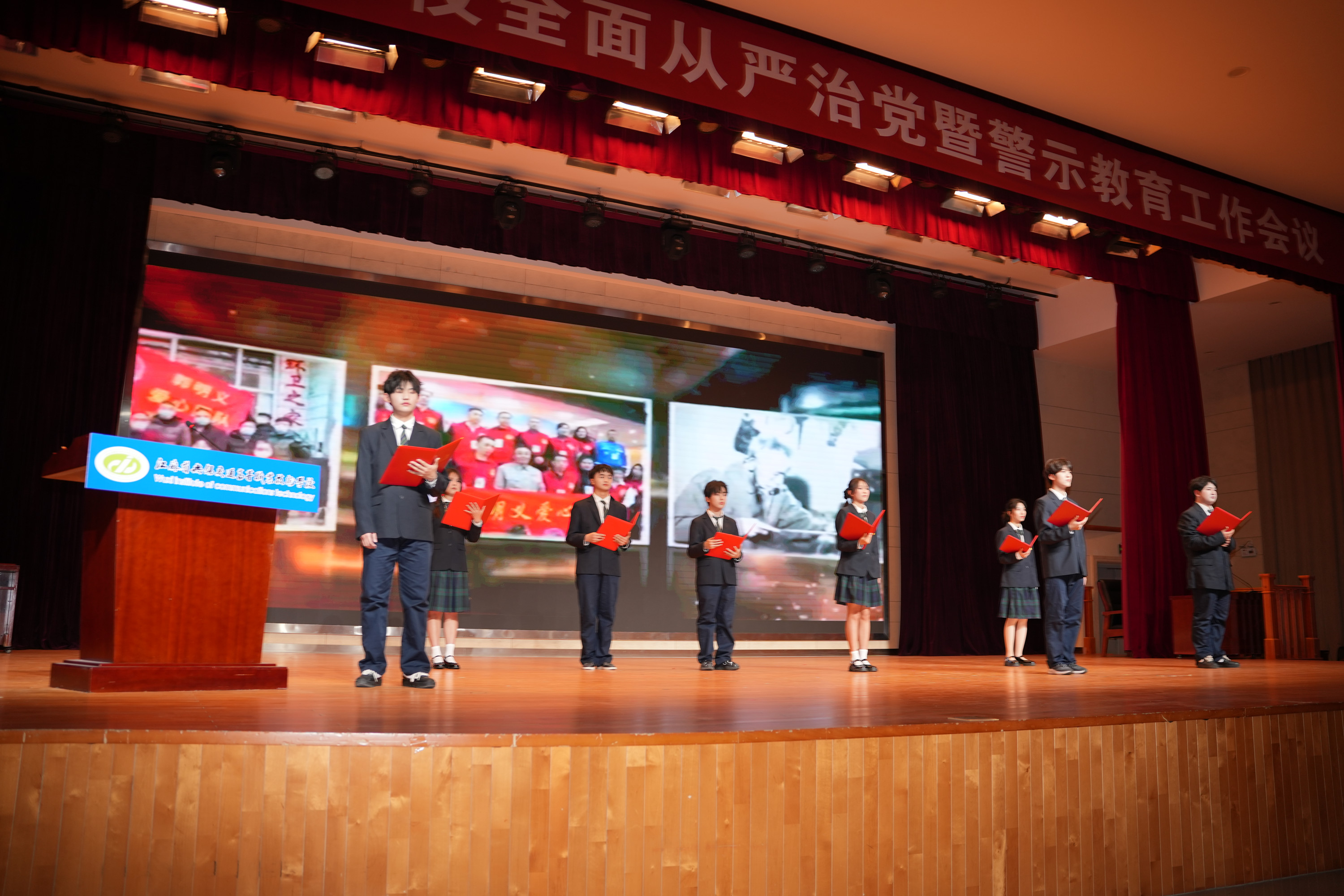 校级社团鹿鸣演说家协会集体朗诵《一个好人的名字》;校志愿者协会新注册青年志愿者集体宣誓,他们以饱含深情的语调、铿锵的誓言和深情的演绎,将雷锋无私奉献、乐于助人的精神风貌生动地呈现在听众面前,表明广大志愿者参与志愿服务实践活动,以实际行动践行新时代雷锋精神的决心。