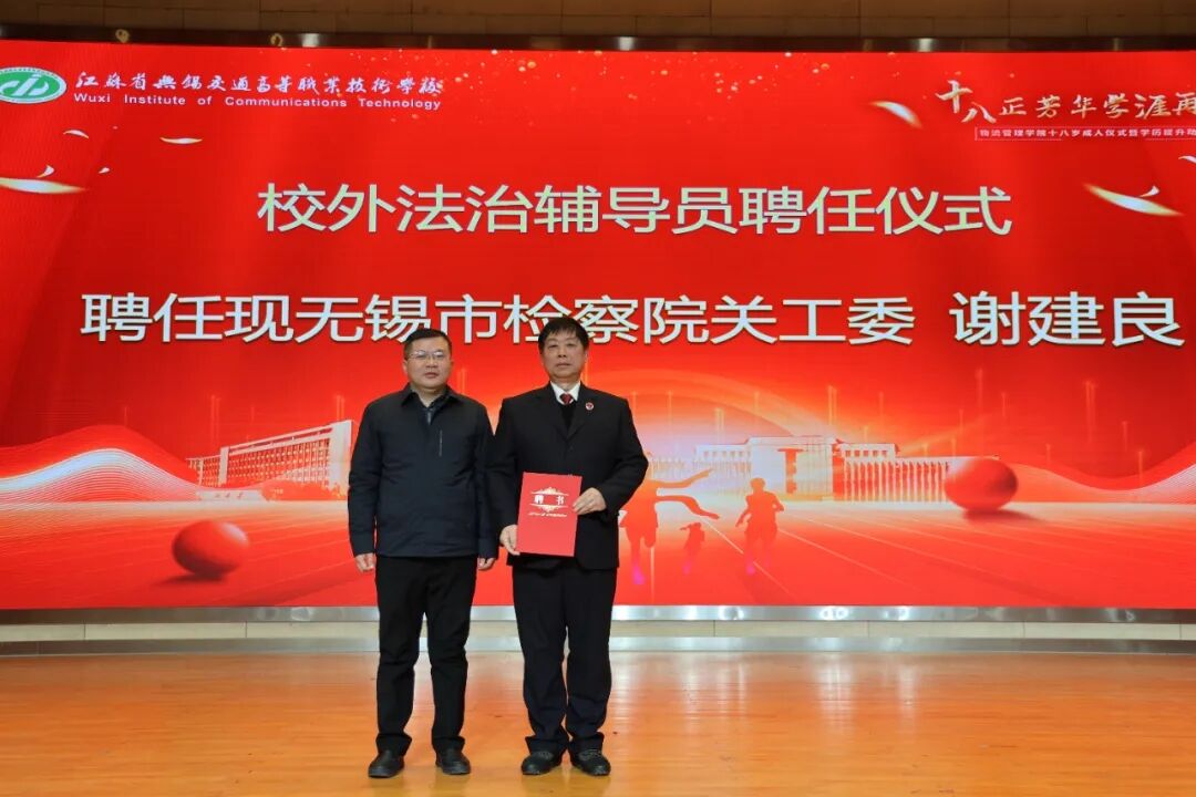 学校党委委员、副校长范次猛,无锡市检察院高级检察官、关工委法治宣讲员谢建良,家长代表、校友代表、师生代表齐聚一堂,共同见证学生迈入成人行列,开启人生新征程。