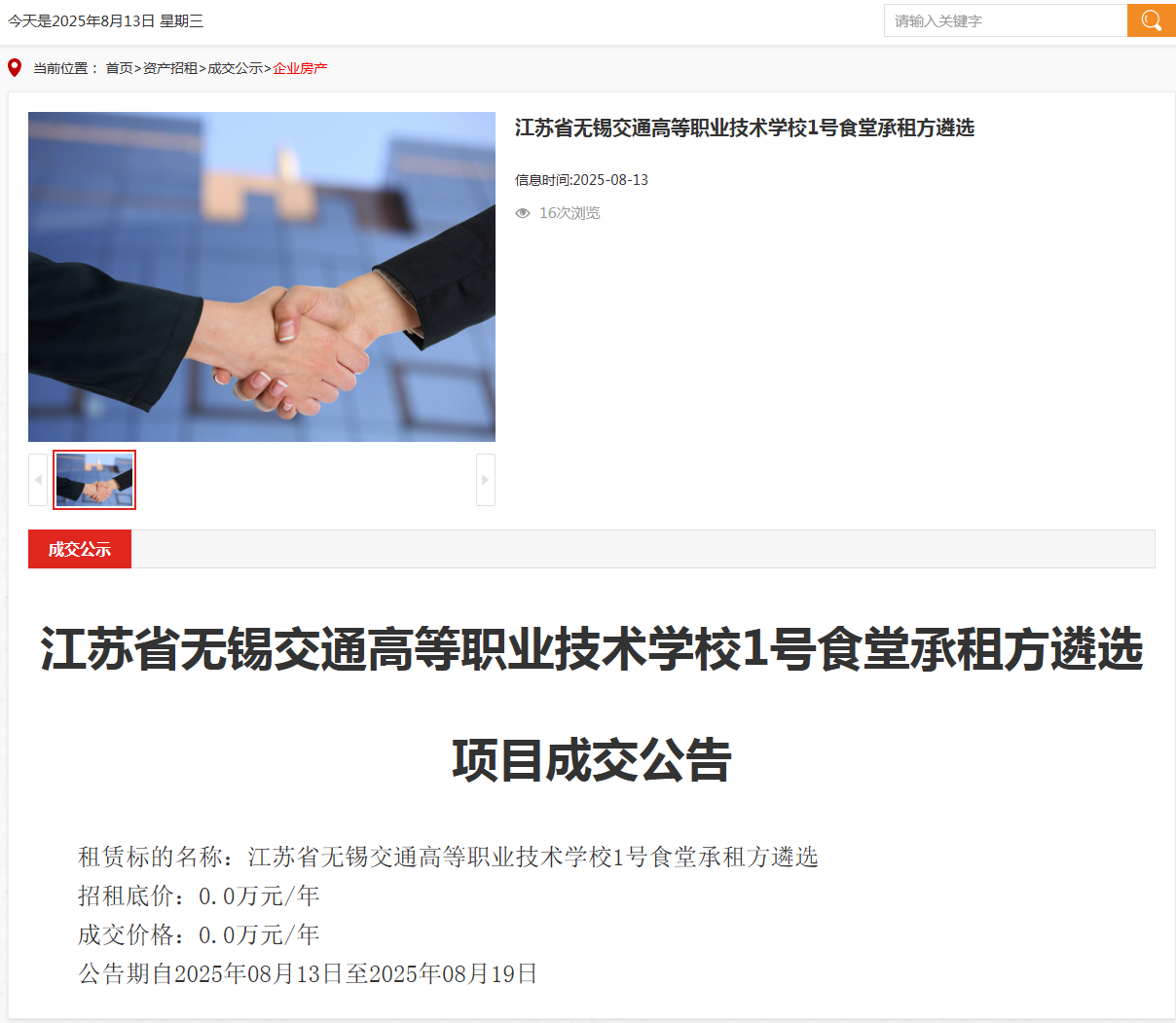 开云app官方在线入口1号食堂承租方遴选项目成交公告