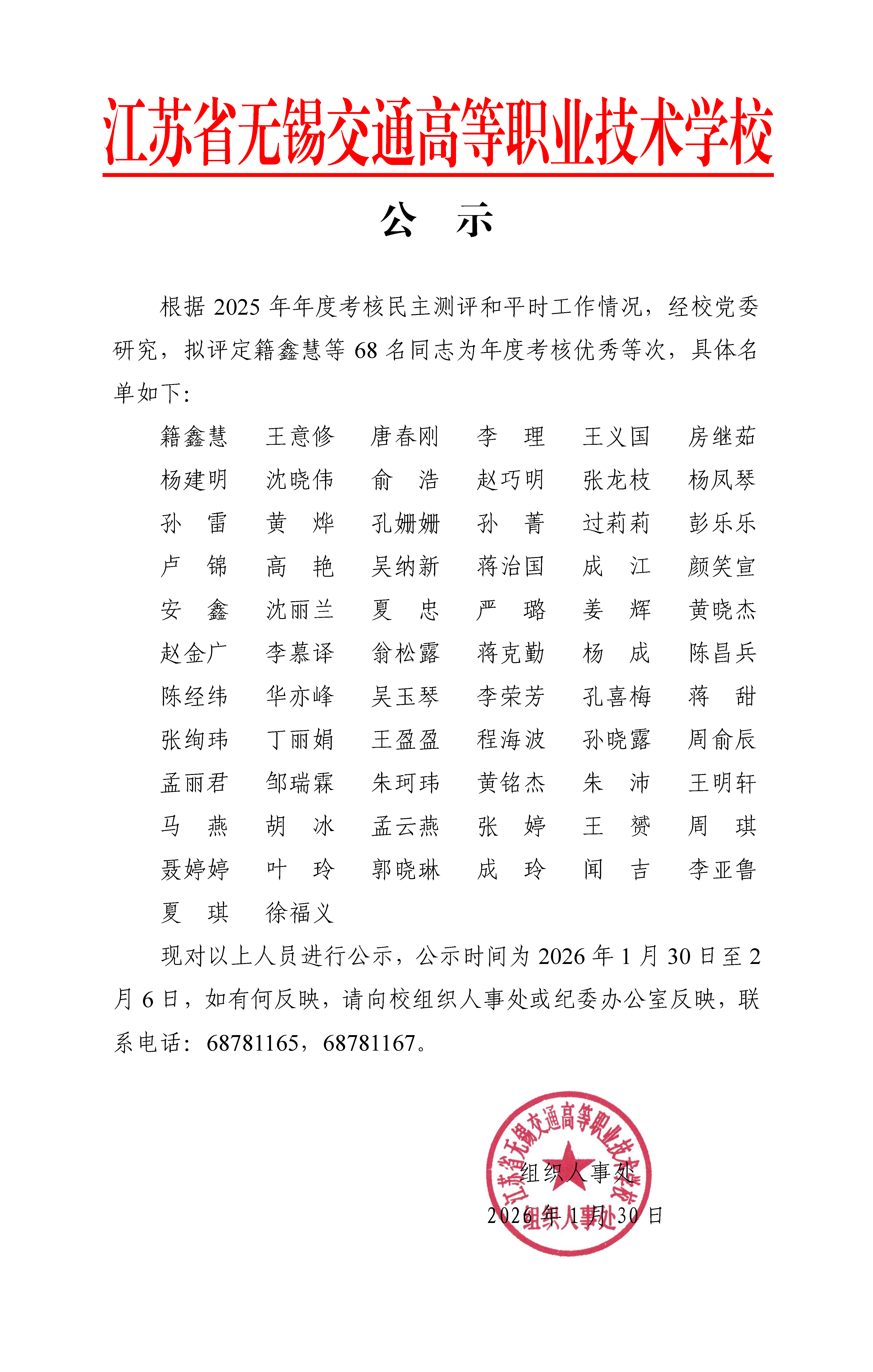 2025年度考核优秀等次人员名单公示