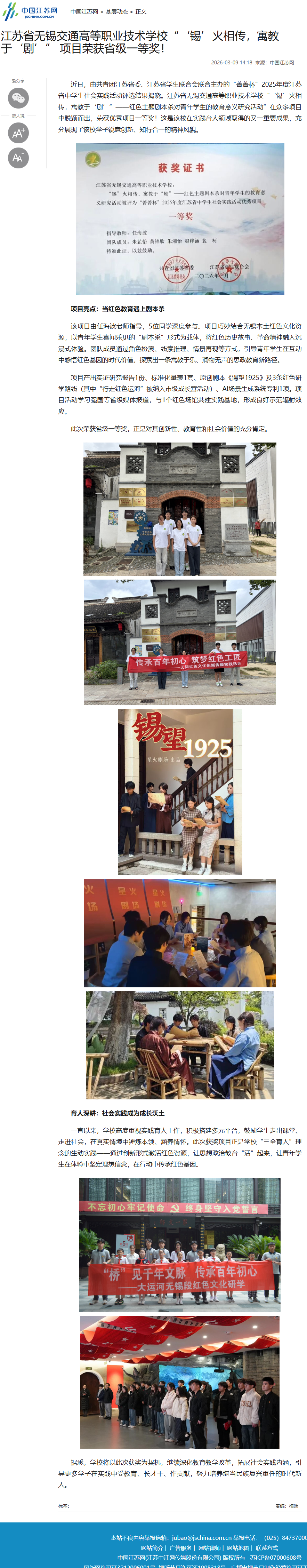 中江网:开云app官方在线入口“‘锡’火相传,寓教于‘剧’” 项目荣获省级一等奖!