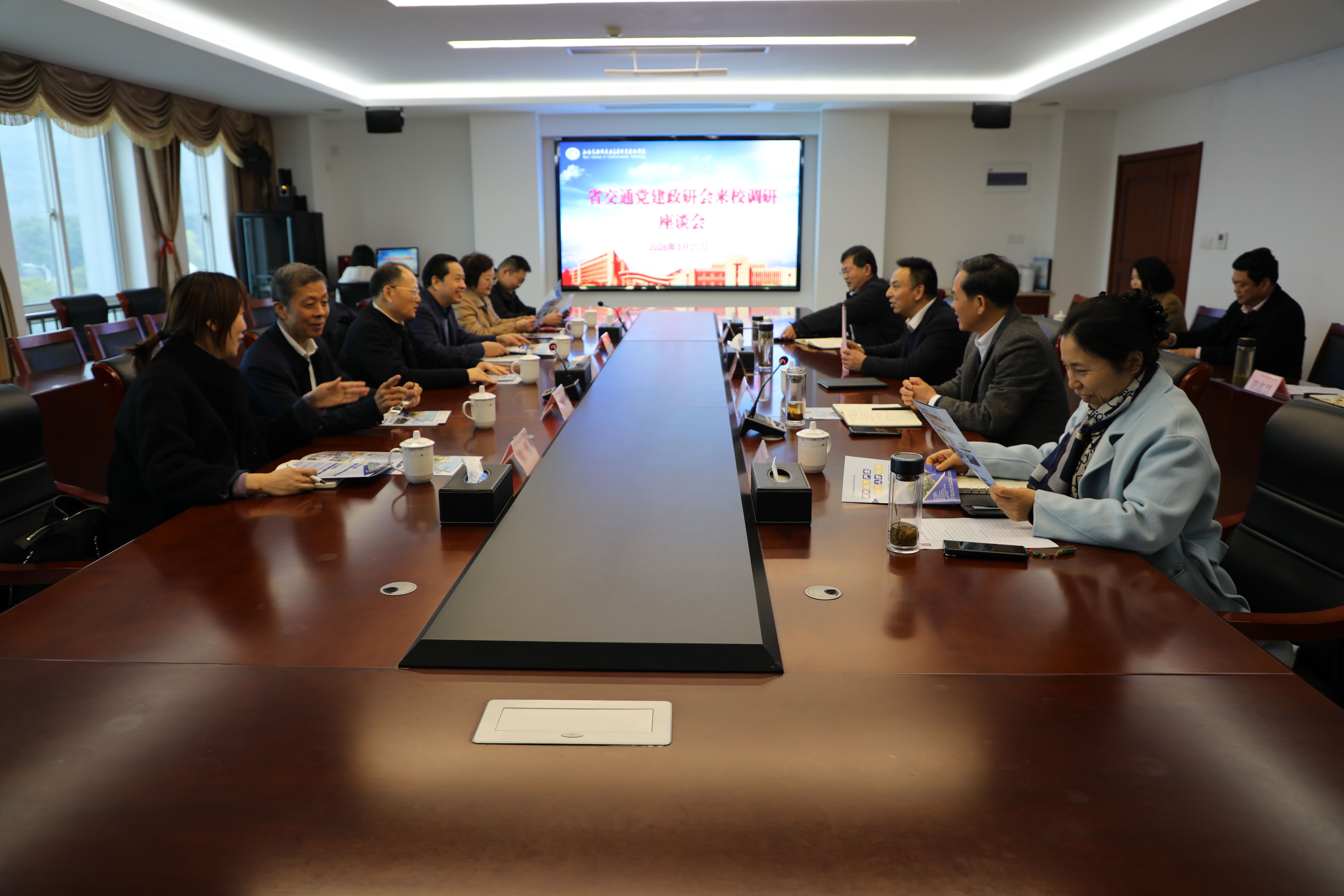 3月20日下午,省交通党建政研会会长汪祝君等一行莅临学校调研考察,全体校领导出席调研汇报会,党政办公室、组织人事处、教务处、交通工程学院、继续教育学院等相关部门负责人参加了会议。