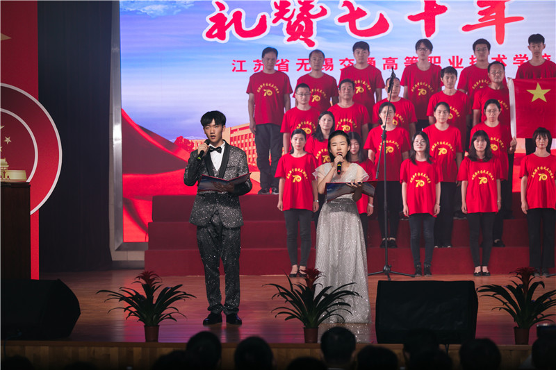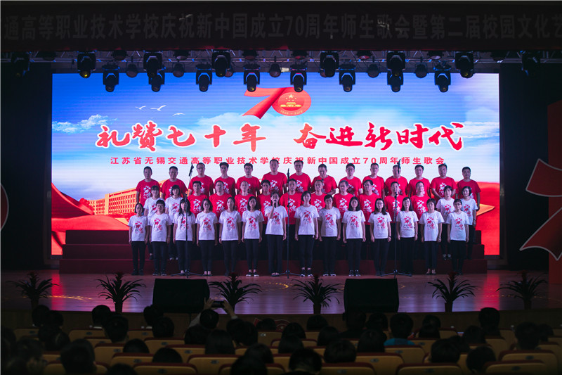 9月26日,学校大礼堂欢声雷动、载歌载舞,由开云app官方在线入口主办的“礼赞七十年,奋进新时代”—庆祝中华人民共和国成立70周年师生歌会精彩上演。全体校领导,全体中层干部,学生代表,来校交流的镇江技师学院的学校领导一同观看了演出。
