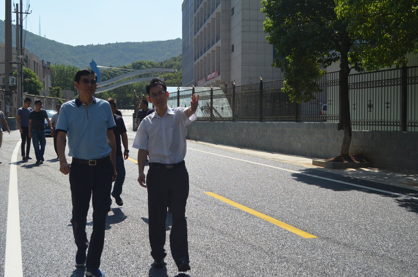 现场,夏正兴局长听取了省无锡交校南北校园道路整修项目近期工程情况汇报。无锡交校南北校园道路整修项目,在无锡市交通运输局的坚强领导下,工程项目推进有序,无锡市公路处及有关处室和施工单位负责人,每天亲临现场,指导现场施工,目前已经基本完成沥青的摊铺工作。后期工作重心将转移到工程细节上,力争工作按时、圆满完成。随后夏局长一行在学校校长陆春其的陪同下,考察了校园周边道路和设施。