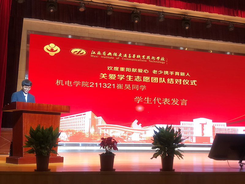 2021年10月14日上午,学校组织“欢度重阳献爱心 老少携手育新人”关爱学生志愿团队结对仪式。在活动中,我校离退休老同志在校关工委、退教协的组织下,自2021年开始,每年将对新生中贫困的学生采取一对一、多对一进行认领捐赠、直接捐赠等帮扶方式,对高职学生前四年、中职学生前两年进行连续帮扶,每年资助每名学生200元,并多方面关爱,通过线下线上长期联系,帮助学生成为品学兼优、学有所长的高素质技能人才贡献智慧与力量。