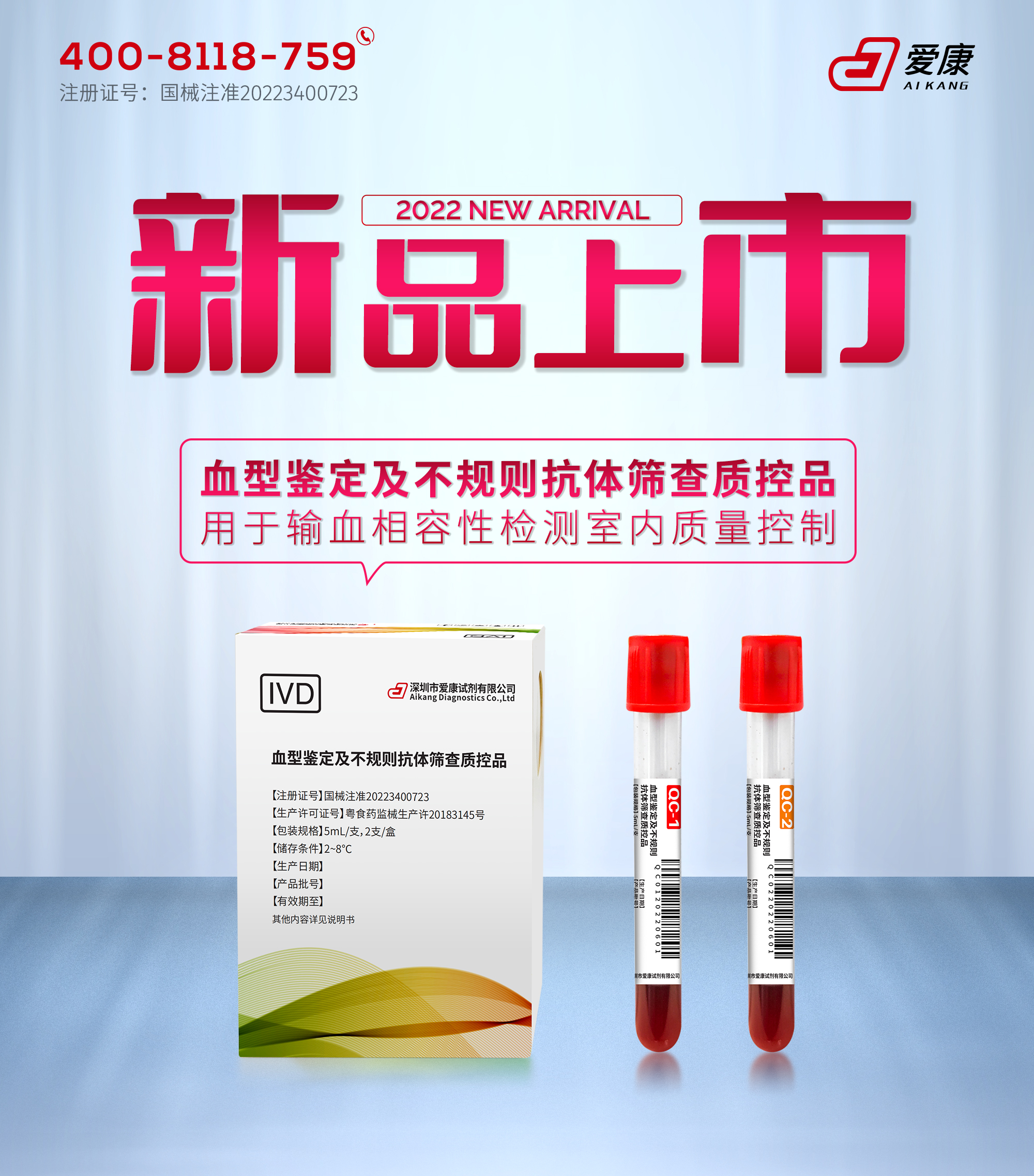 热烈庆祝深圳爱康自主研发的血型鉴定及不规则抗体筛查质控品顺利通过评审并取得注册证 (国械注准20223400723)。