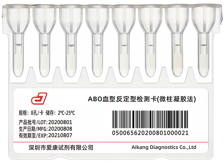 采用微柱凝胶法,8孔卡设计,适用于ABO血型反定型的检测