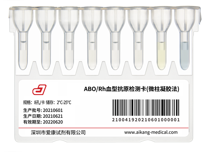 采用微柱凝胶法,8孔卡设计,用于ABO血型正定型及RhD、RhC、Rhc、RhE、Rhe血型抗原的检测