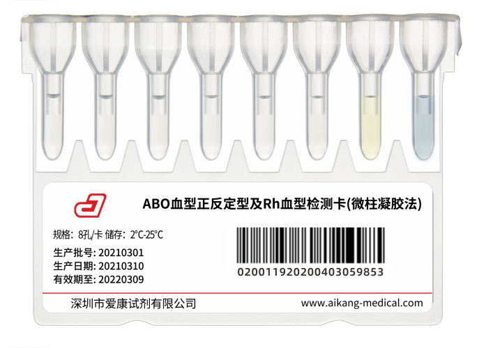采用微柱凝胶法,8孔卡设计,用于ABO血型正反定型及RhD血型抗原的检测