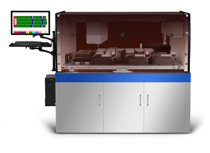 URANUS AE全自动酶免仪是由爱康公司自主研发生产,全自动完成ELISA实验,包括标本分配、试剂加注、振荡、孵育、洗板、酶标判读等检测流程,适用于各类血液机构。