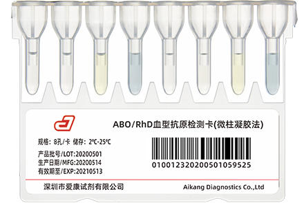 用于进行ABO血型正定型检测,可作为血型复查的常规检测卡