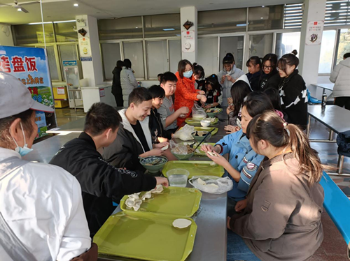活动期间,同学们积极动手参与,相互帮助,现场满是节日气氛与师生温情。食堂的工作人员也被热闹气氛所感染,参与其中,耐心的给大家现场教学了不同饺子的包法,让同学们更加感受到包饺子的乐趣。