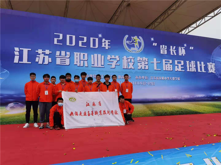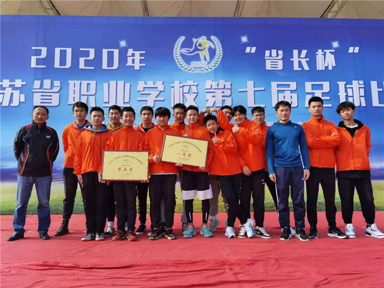 2020“省长杯”江苏省职业学校第七届足球比赛于11月14-19日在江苏省淮阴中等专业学校举行。高职男子组比赛共有来自13所学校的13支男子足球队近200余名运动员参赛。经过7天场上激烈的角逐,我校足球队顽强拼搏,获得2020“省长杯”江苏省职业学校第七届足球比赛高中男子组总决赛第五名一等奖的好成绩。