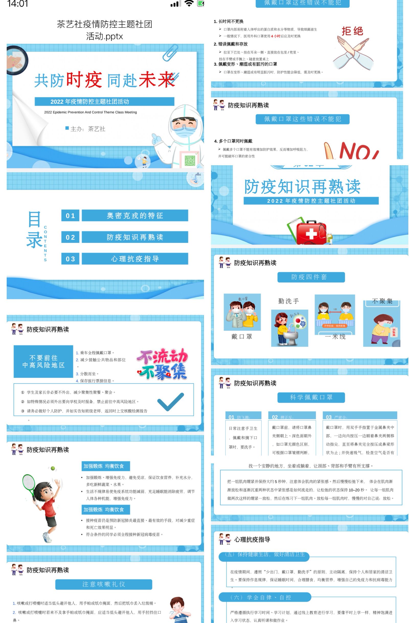 在线上社团活动中,两位社团指导老师利用学习通平台,与社团成员们通过直播的方式一起认识了近期盛行的奥密克戎病毒的特征,因其潜伏期短、传染性强、隐匿性强、传播速度快等特点,指导老师们强烈要求社团成员们一定要做好个人防护,同时带领大家一起再次熟读防疫知识。最重要的是,指导老师对社员们进行了心理疏导,并倡导大家不出门、不添乱、少聚集、少接触,用自己的实际行动为无锡疫情防控贡献自己的一点力量,静等无锡的春暖花开。
