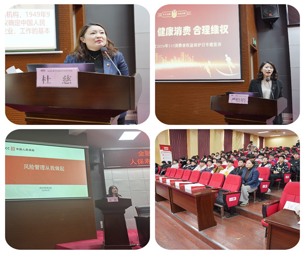 在第42个消费者权益日来临之际,为科普金融安全知识,普及金融消费者“八大基本权利”,提升青年学生金融素养和风险防范意识,传递健康、文明、理性的消费观念,3月12日下午,人保寿险无锡中支来校开展“金融消保在身边 保障权益防风险”金融消费者权益保护教育宣传活动。校领导、人保寿险无锡公司领导出席活动,200多名学校师生参与。