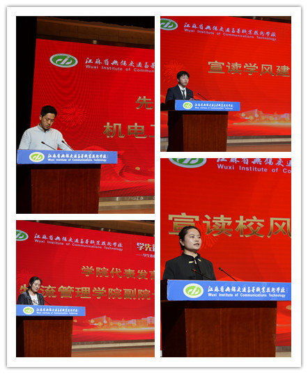 校团委副书记孙霞宣读了《学校加强校风学风建设提升年活动实施方案》,汽车工程学院冯锦涛同学宣读《学风建设倡议书》。物流管理学院副院长江玉婷介绍了学院在加强校风学风建设方面的经验举措