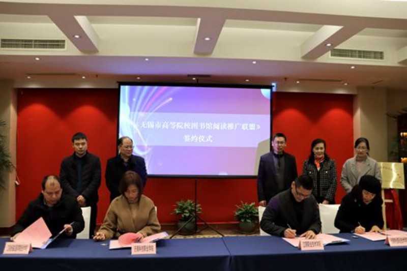 2月28日下午,无锡市高等院校图书馆阅读推广联盟成立大会在无锡君来湖滨饭店召开,我校图书馆馆长李小平带领馆员颜笑宣参加签约揭牌活动,标志我校图书馆正式成为无锡市高等院校图书馆阅读推广联盟成员。