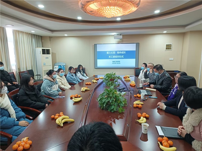 为做好贫困生的帮扶工作,将新时代离退休老干部关心下一代心愿落到实处,127日,学院关工委组织老教师与贫困学生进行二级关工委结对仪式,落实一对一、一对多关爱帮扶结对,完成15名困难学生结对工作。学校关工委组织代表蒋治国、船舶工程学院关工委“五老”成员席秀珍、学院领导、相关师生共同参加了此次活动。