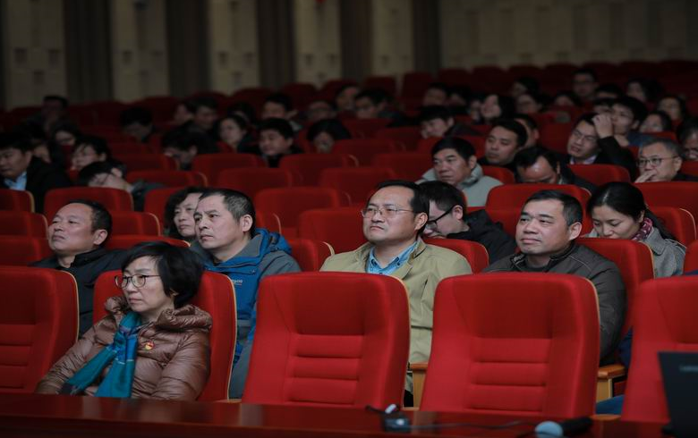 最后,学校党委书记李虎总结回顾了2018年的工作重点,全年学校坚持以巡察整改为主线、以创建现代化示范性职业学校为中心、以建校60周年高质量转型发展为主题,圆满地完成了三项重点工作。李书记强调全体教职员工要继续深入学习王继才先进事迹,坚定理想信念,在平凡的岗位上积极奉献,担当作为,以廉政教育片中典型案例为警钟,严明纪律规矩,加强作风建设,建设忠诚担当、廉洁自律高素质干部队伍和具有良好师德师风的新时代教师队伍。为加快推进学校改革的步伐,鼓励全体教职员工以《新时代高校教师职业行为十项准则》为规范,做新时代的优秀教师,落实好“立德树人”的根本任务,进一步推动学校高质量转型发展迈上新台阶。