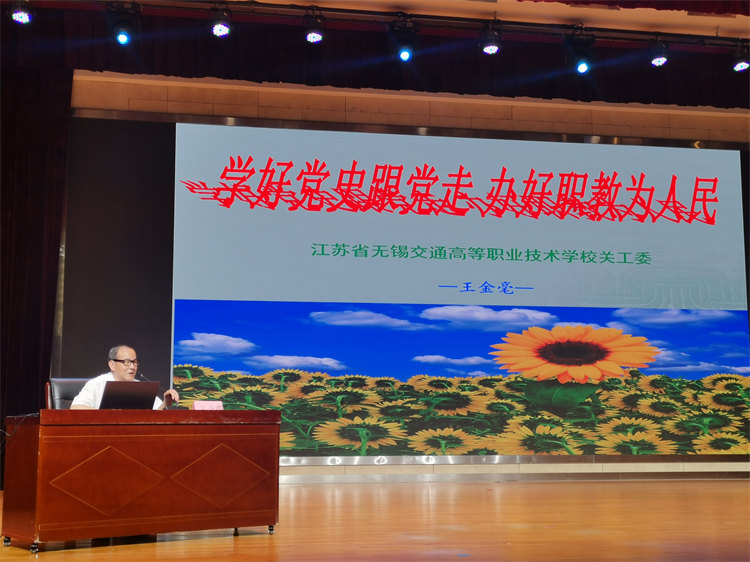 为深入推进党史学习教育引导广大师生从百年党史中汲取奋进力量。6月8日下午,学校关工委副主任王金毫同志来校做了题为“学好党史跟党走,办好职教为人民”的党史学习教育专题讲座,讲座在大礼堂进行,全校300余名师生参加此次活动。