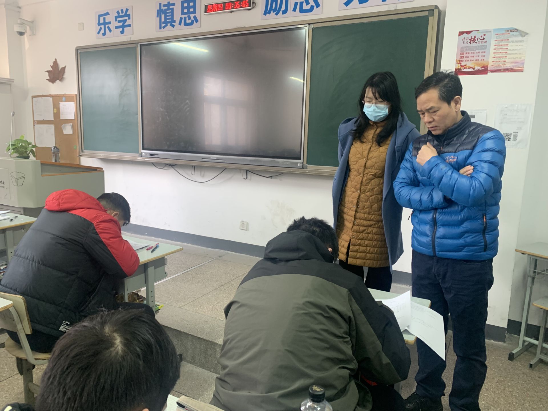 学校领导重点巡查了各教学楼教学设施和教学纪律情况、“开学第一课”开展情况和期末考试组织及实施等情况。从检查情况来看,教学状况总体良好,教学工作开展井然有序。老师们都能按时到岗、认真负责、精神饱满,同学们也能够按时到班级上课,课堂秩序较好;教学设施及教室卫生整体情况良好,教学用品准备齐全;图文信息中心全面检修了多媒体设备,保障了教学秩序正常运行。期末考试准备工作充分,各考场秩序井然,监考老师恪尽职守,考生们态度端正,自觉守纪,表现出良好的诚信意识。