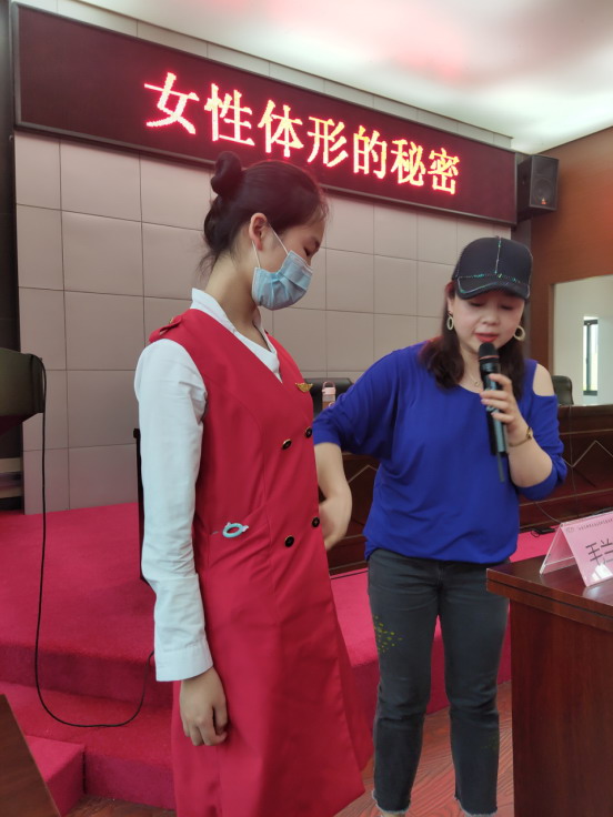 5月25日,学校在学术报告厅举办女职工素质提升---《女性体形的秘密》的专题讲座。讲座邀请苏州大学艺术硕士、无锡太湖学院赵青教授来校主讲,近百名女职工代表和航空礼仪班的女学生参加了讲座。