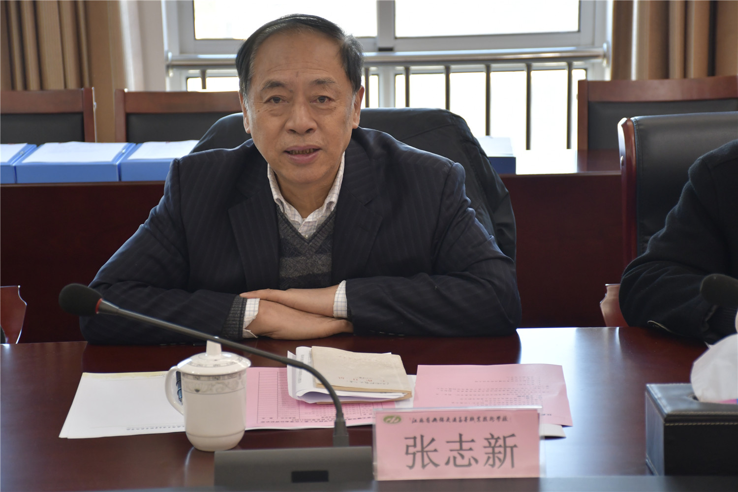 校党委书记、校长李虎在会前与张志新主任进行亲切交流,李书记表示我校关工委在上级关工委指导下,深入学习贯彻习近平总书记关于做好关心下一代工作的重要指示精神,积极组织开展各项关爱活动、加强自身建设、落实关工委工作常态化工作要求,取得了一定成绩。