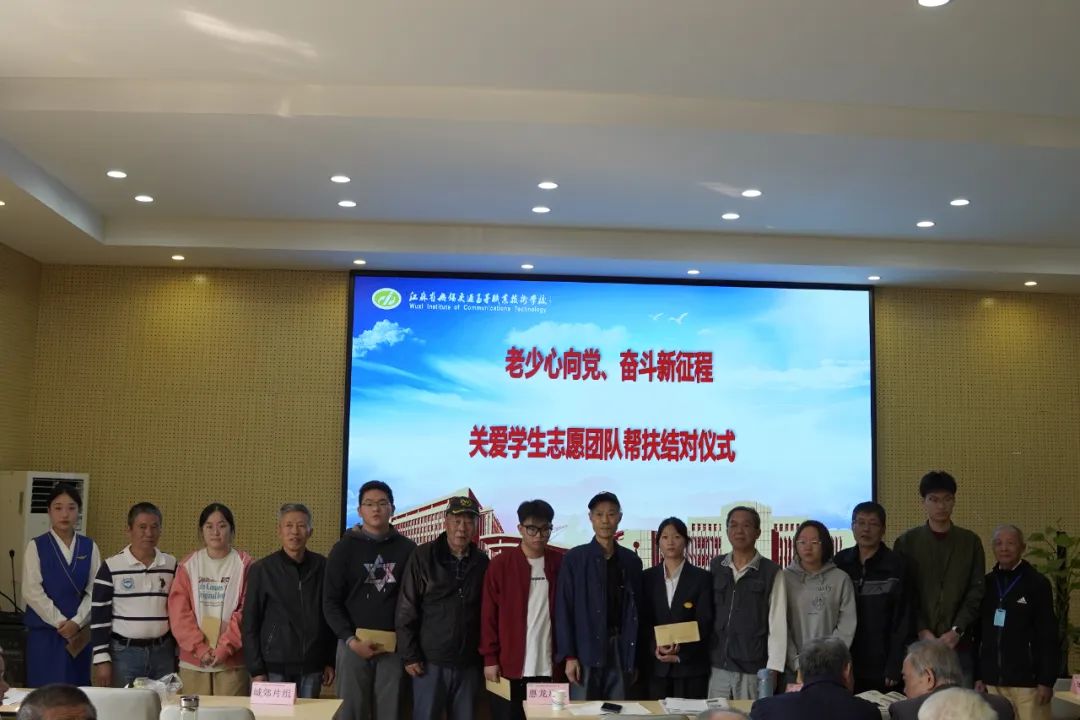 现场举行了关爱学生志愿团队结对仪式。112名老同志共捐赠爱心款近2万元,用于资助困难学生。会上还对智老培训工作和“银发生辉”活动进行总结,对先进个人进行颁奖。李进代表学校党委向老干部表示崇高的敬意和衷心的感谢,并向广大离退休老领导、老同志发放重阳节糕点致以诚挚的慰问。