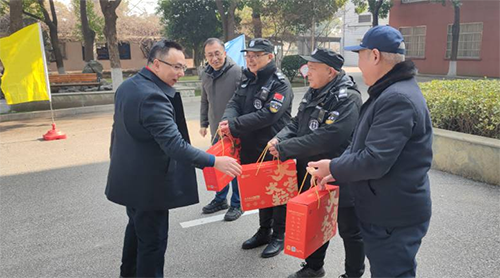 李进校长来到锡澄校区首先为在岗值守的教工和安保人员送上新春祝福和慰问品,并感谢大家在应该阖家团圆的时候坚持在岗值守,为大家的奉献精神点赞。