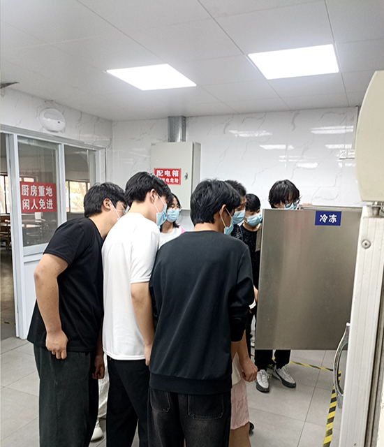 在食堂工作人员引导下,学生代表实地参观了学校食堂的各个区域,从食材储存仓库、洗菜间、切配间,到烹饪区、备餐区,再到餐具清洗消毒间,详细了解餐品从原材料采购到加工制作,再到端上餐桌的全过程。食堂内干净整洁的环境、规范有序的操作流程以及严格的卫生标准,给学生们留下了深刻的印象。