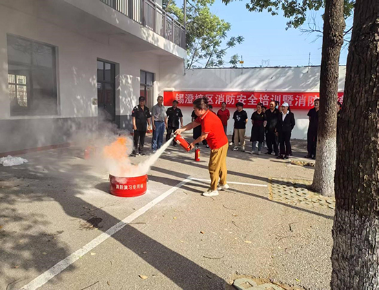 培训环节,安全员深入浅出地讲解了火灾预防、消防器材使用等知识,通过现场演示,让抽象的消防知识变得通俗易懂。随后,全体人员前往操场开展实战演练。安保、食堂、超市、物业员工有序进行灭火器操作,学习 “提、拔、握、压” 四字口诀,成功扑灭模拟火源。整个过程紧张有序,达到了预期效果。