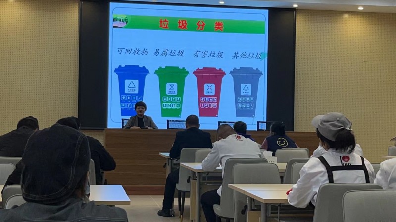 为了进一步做好学校的垃圾分类工作,加强学校的食品安全保障,2022年11月28日,后勤管理处组织餐饮外包人员,在3号食堂2楼报告厅开展江苏省“全民健康工程”环保健康、幸福江苏的专题讲座。