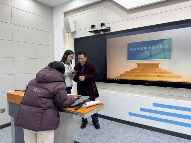 团队成员先对微课专题“从‘四个现代化’到中国式现代化”的讲稿、课件和现场教学拍摄的视频进行精心打磨,经过近3个小时的研讨推敲,最终完成了微课作品的录制。下午针对思政课程《毛泽东思想和中国特色社会主义理论体系概论》专题五示范课开始有条不紊地开展现场教学拍摄。负责人王龙生老师结合学生所学的空中乘务专业,借助于学习通教学平台,精心打磨课件,巧妙构思教学环节,多次重拍布局,在教研室多位老师通力协助下,历经近4小时圆满完成了教学实录拍摄任务。
