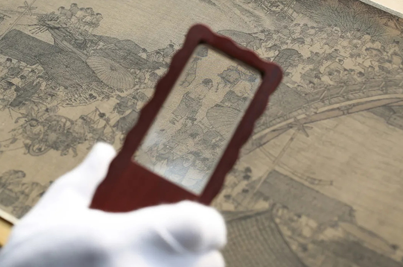 该品按照原画尺寸,使用文物DGA复刻技术,同等比例的做出了高清全卷的7幅传世古画。清晰还原,画作真迹细节一览无遗。学习委员张艺表示:“课文的学习比较抽象,现场的观摩更能感受到古画的震撼。”通过本次近距离观察《清明上河图》,同学们表示,通过画作似乎走进了北宋汴梁城的繁华市井,感受到了北宋的风华绝代。班长陈建宇表示,百年古画传递的是历史的密码,让学生们在欣赏百年前的盛世画卷中,也感受到了传统文化的魅力。